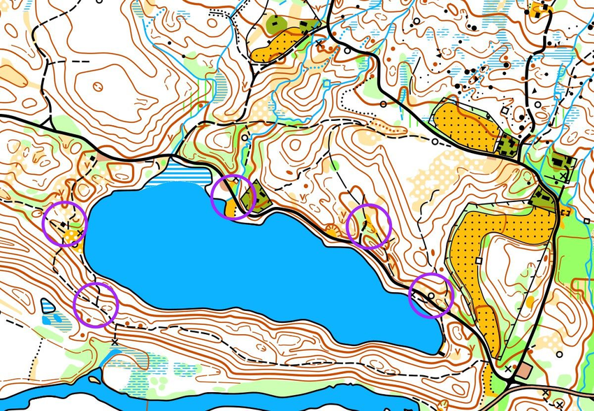 Vietos, kurias reikia rasti, vadinamos kontroliniais punktais (toliau – KP) ir žemėlapyje žymimos apskritimu. KP apskritimo centre yra detalė, kuri lengvai matoma vietovėje. Šioje vietoje kabo KP prizmė.